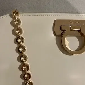 Salvatore Ferragamo - AUTHENTIC Gancini Bag, in Bone, 24 Carat Gold Chain. NEW!