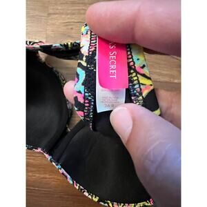 Victorias Secret Strapless Molded Cup Bikini Top Size 36B. Padded, push up, underwire top. This listing is for the top only. There are no straps, but are loops for straps if you want to use a solid color.