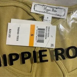 Introducing the Hippie Rose Juniors' T-Shirt in a bold shade of green. The criss-cross style adds a unique touch to this tee, making it a must-have for fashion-forward women. The material is a blend of spandex and rayon, ensuring comfort and flexibility, while the brand Hippie Rose ensures high quality. This T-Shirt is perfect for young women who want to make a statement with their fashion choices. The size is small and it comes with tags, making it a new addition to your wardrobe. Don't miss out on this trendy piece, that is sure to turn heads.