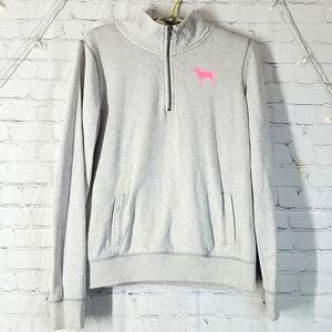 Y2K 2011 Victoria's Secret PINK Logo Quarter Zip Collared Gray Sweatshirt Sz Sm