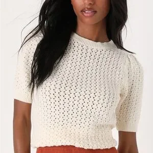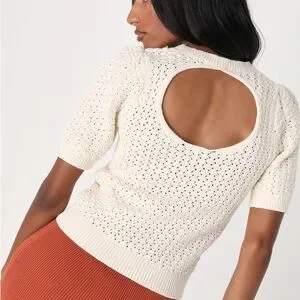 Ivory Crochet Cutout Short Sleeve Sweater Top