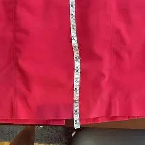 Lauren red dress, gold zipper in back, some discolored areas, just dry cleaned, the spots would not come out. Measurements in pictures.
