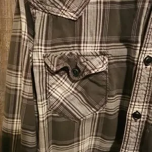 This men's L size shirt is perfect for any casual occasion and can be paired with jeans or khakis. Its fabric type, flannel, adds warmth and a cozy feeling, making it perfect for fall and winter. Whether you're running errands or meeting friends, this button-up shirt is a versatile piece that will make you look stylish without even mentioning its condition. Feedback is always appreciated!