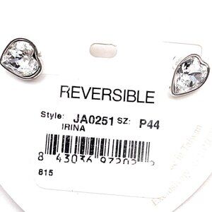 Reversible earrings, pearl posts on one side, crystal hearts on the other, in new condition.