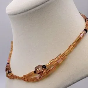 Vintage Czech Hand Beaded Two Strand Cube Necklace.