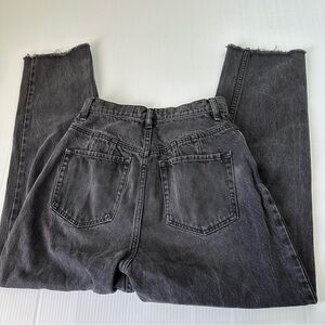 DESCRIP: We The Free Georgine Mom Jeans in Obsidian, a washed black color. Features factory fading, light whiskering , button fly, 5 pocket style, high waist, and raw frayed hems. The CRVY Collection by We The Free