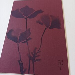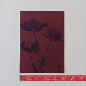 ORIGINAL ART Ink Poppies on Maroon Mat Board. 5"x7" Moody, Whimsical, Subtle