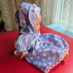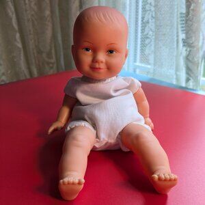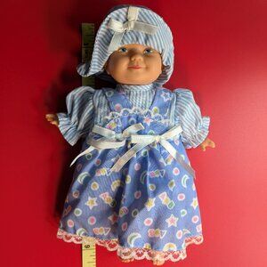 In very good condition, pre-owned, soft body is filled with plastic beads making doll pose-able, arms, legs, and head are soft rubber/vinyl and realistic, made in 1997 by Unimax #5259, no holes, no tears, no stains, no damage, clean from a smoke free home, outfit can be removed and is fastened with 2 pieces of velcro in back, 9-10"