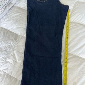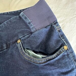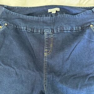 Woman Within plus size 24W jeans dark indigo straight leg. Elastic side inserts at waist for super comfy fit. Jeans are stretchy pull on style.