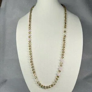 Banana Republic Necklace Smoky Clear Pink Faceted Sparkling Beads Layer Long 36"