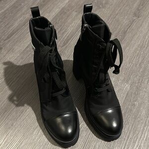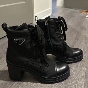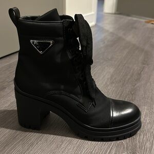 PRADA Brushed Leather and Re-Nylon Laced Booties
