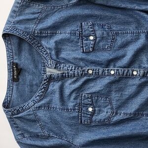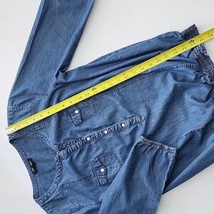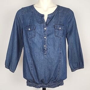 Jessica Women's Dark Denim Cotton Top 3/4 Sleeves 1/2 Button Up Size S