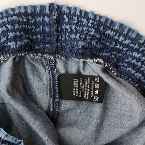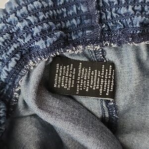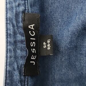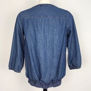 Excellent pre-owned condition, Jessica dark denim 100% cotton pullover top with 3/4 length sleeves and elasticized bottom hem, size Small / 8.