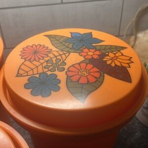 VINTAGE Rubbermaid orange floral canister set. Plastic with painted flowers.
