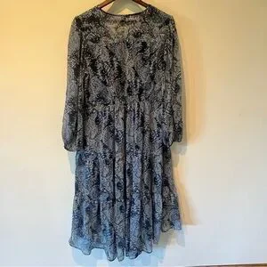 Joie Floral Layered Sheer Sleeve Flowy Dress in Parisian Paisley XL