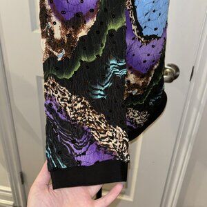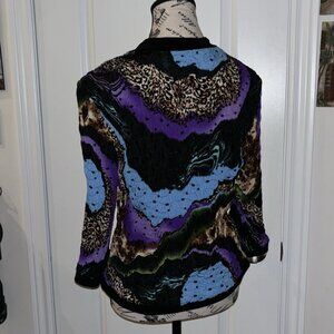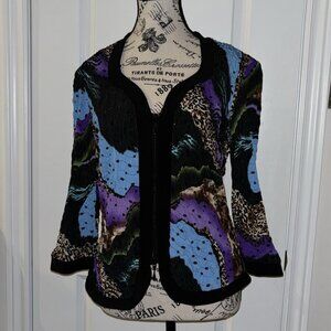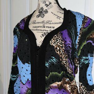 Joseph Ribkoff Jacket Size 12 Black Colorful Print Textured Sequin Zipper Womens