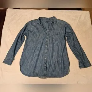 J Jill denim top Super cute with paint splatter design Excellent condition No rips, stains, or flaws 21 pit to pit 26 L OFFERS WELCOMED BUNDLE AND SAVE THANKS FOR LOOKING ❤️ ❤️