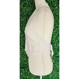 Polished, versatile, and designed to show a peek of skin. This tailored staple has a halter-neck fit, lapel details down the front, and an adjustable, belt-style tie in the back. It is crafted from a lightweight, drapey linen-cupro blend, which is just as smooth as—and more durable than—silk, and made from recycled cotton linter at a zero-waste facility. Write me with any questions!