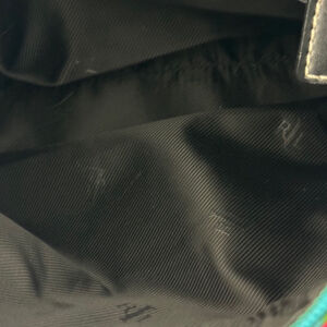 The bag is made of nylon and fabric, with a black lining color. It has inner pockets and is lightweight and easy to carry. W 11” x H 7” x D 2”