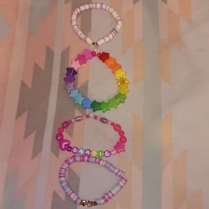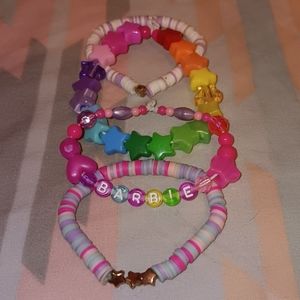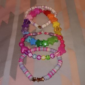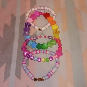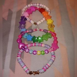 ♡ Set Of 4 Kawaii Barbie Doll Inspired Rainbow Girly Colorful Bright One Of A Kind Bead Bracelet Set Like New Condition ♡