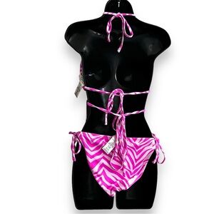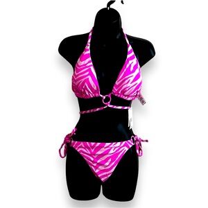 Jessica Simpson women’s electric pink zebra print two piece bikini L/XL