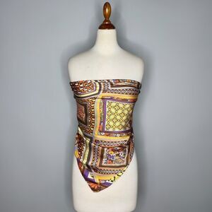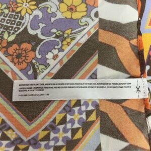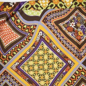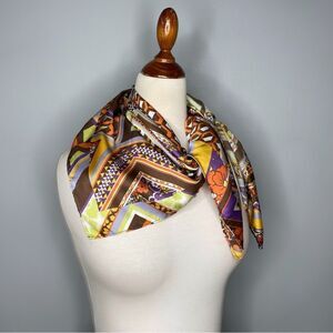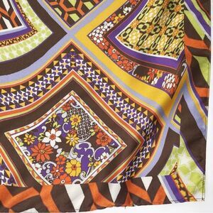 Urban Outfitters 70’s Psychedelic Floral Paisley Satin Square Scarf 29” x 29". Can’t remember is this is Anthropologie, Urban Outfitters, or Free People but it’s super fun and in perfect condition.