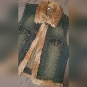 Vintage Cejon 100% Real Rabbit Fur Trim Denim Vest ♥️