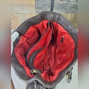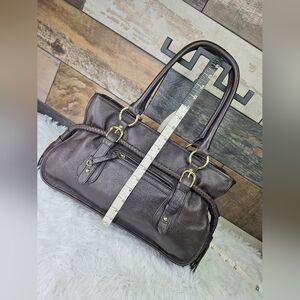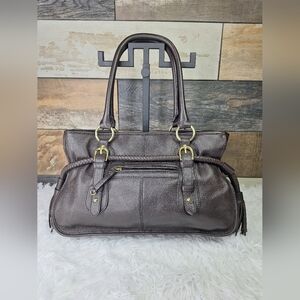 Absolutely gorgeous bag. Leather is great quality and out of this world! Detailing is impeccably done with the braided straps across the top of bag. Huge tassels! Three inside compartments, one with a zipper. Large inside and outside zipper pockets. Great style coming and going!