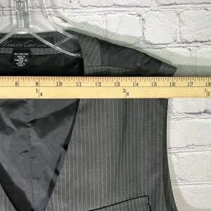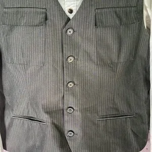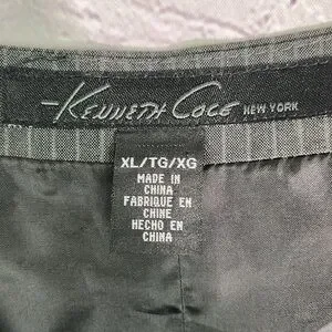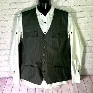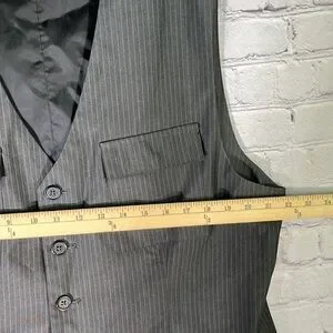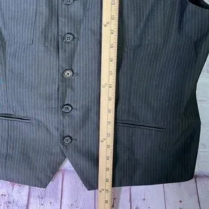 Kenneth Cole New York Men's Striped Dark Gray Vest. Size: XL Shell: 65% Polyester / 35% Rayon. In VERY GOOD pre-owned conditions. (See pictures for more details and measurements.) Please check the measurements carefully. Smoke and Pet-Free.