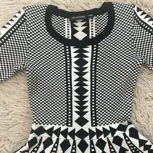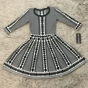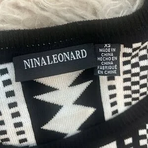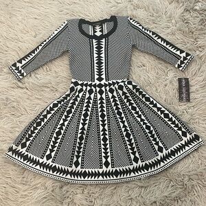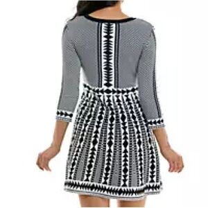 NWT Nina Leonard black ivory white geometric pattern flare skater dress size XS