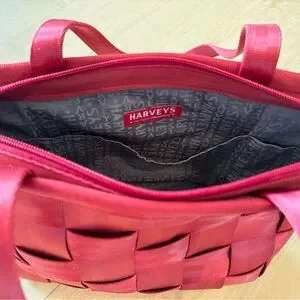 Harvey’s seatbelt tote bag in red. Excellent condition. Approximately 12x10x4 inches. Solid construction, fun bag for everyday use!