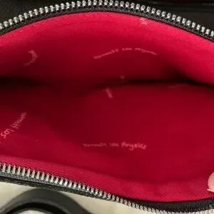 Exterior: Two main zip pockets, zip flap pocket inside reversible flap, phone drop pocket and adjustable removable crossbody strap