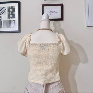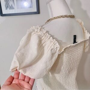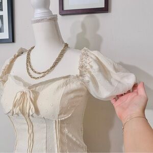 ❌SOLD❌ Forever 21 Cream Bustier Crop Top Puff Sleeve Ruched Blouse Polka Dot Med
