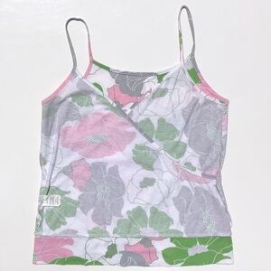 Linea Faux Wrap Top women M sleeveless Spaghetti Strap Floral white pink green