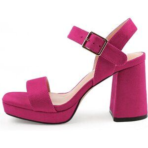 Women's Pink Chunky Platform High Heels Ankle Strap Block Heel Sandal