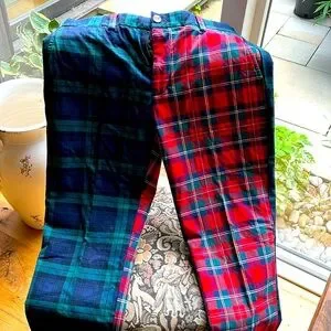 These are the perfect pants for the holidays! Great condition no rips stains or tears worn a couple of times. 31 x 32 waist. Button fly with zip closure. Two hip pockets and a little change pocket. Two back slit pockets.