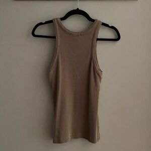 Sporty AGOLDE ribbed knit tank top in a light brown/tan “Pantyhose” color. Only wore once or twice because it was a little too big for me.