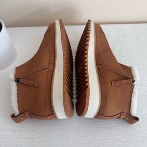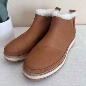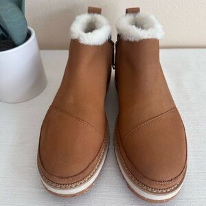 TOMS Tan Suede Leather Faux Fur Lining Cozy Ankle Booties Women’s 9