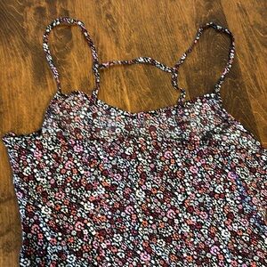 Black & pink floral dress with side zipper closure. Light weight material. In excellent used condition.