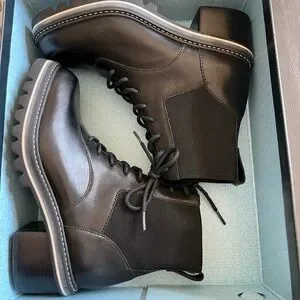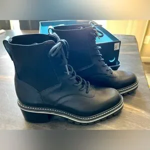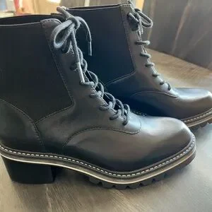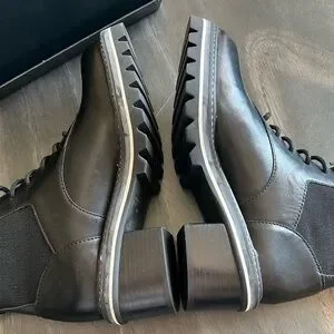 NIB Bernardo Salerno 8.5M Black Leather Lace Up Ankle Boots
