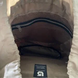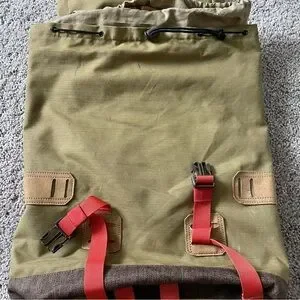 Has been used two times for traveling and has some very minor scuffs as shown in pictures but in great condition and has no tears. Backpack has zipper compartment on the flap, zipper compartment on the inside, and side zipper compartment by the straps of the backpack. Straps of the backpack are also padded and has drawstrings to help adjust the size of the backpack