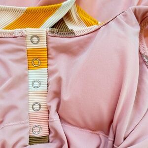 Ahh, one piece of mind. It's vacay time! Comfy, ribbed nylon with the right amount of stretch. Oh snap! Snap henley deets.