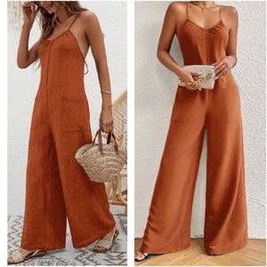 Solid Criss cross Tie Pockets Wide leg Jumpsuit
