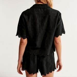 ABERCROMBIE & FITCH: Ultra High Rise Comfy 3.5" Pull-On Shorts in a Soft Linen-Blend Fabric, Featuring an Elasticated Waistband, All-Over Eyelet Details, a Scalloped Hem and Front Pockets in Black. The Perfect Staple to Add to Your Wardrobe for an Effortless Timeless Chic Look This Summer. (Size: XL) *NWT*
