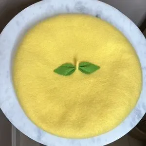 Same hat Taylor Swift wears in the Karma Music Video! Yellow Beret Hat with Green Leaves on top!