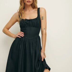 NEW Reformation Balia Linen Midi Dress Sz2 Black