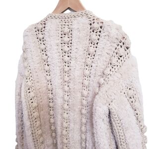 Vintage Answers by Riddles 70s bohemian sweater jacket; crochet detail; wooden button closure; size S (oversized in my opinion); in excellent preowned vintage condition- no flaws