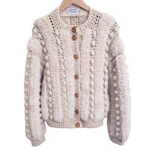 Vintage 70s Answers by Riddles Cream Jacket Sweater, Size S