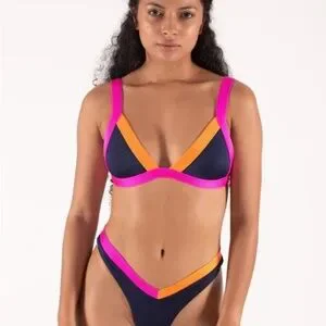 New with tags One One swimwear triangle top - black with orange, purple, and red trim - bought the wrong size and missed return window.