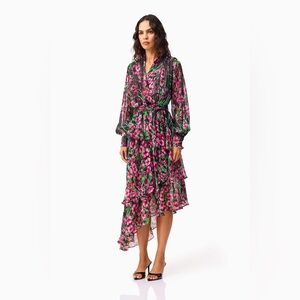 Elliatt Estelle Long Sleeve Maxi Dress in Black & Pink Floral size S NWT